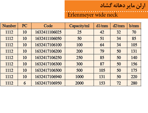 این بخش مخصوص فروش ارلن دهانه گشاد (Wide neck) می باشد. در صورت نیاز به سایر ظروف آزمایشگاهی بر روی آن کلیک فرمایید. شرکت تمادکالا توزیع کننده و عرضه کننده ی انواع ظروف آزمایشگاهی از برندهای معتبر، به صورت تک و عمده می باشد.
