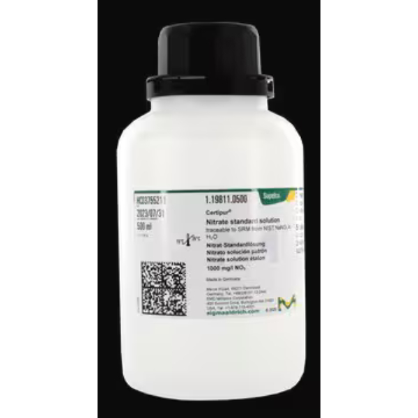 محلول استاندارد نیترات سیگما یک محلول تک جزیی است و با غلظت 1000 میلی گرم در لیتر نیترات در آب عرضه میشود و با برند Trace CERT® به مصرف کنندگان ارائه میشود. این محلول شیمیایی با سطح کیفیت 300 توسط شرکت سیگما تولید شده و مورد استفاده عموم قرار میگیرد. نام دیگر آن، استاندارد نیترات برای IC است که برای تکنیکهای کروماتوگرافی یونی مناسب عمل میکند. در تولید محصولات پاککننده، آرایشی و بهداشتی و مواد غذایی نیز مورد استفاده قرار میگیرد. همچنین یک مرجع مناسب و مفید برای کالیبراسیون و کنترل کیفیت است.