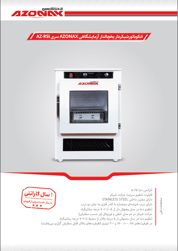 | حجم دستگاه | 75 ، 100 ،140 و 200 لیتر |